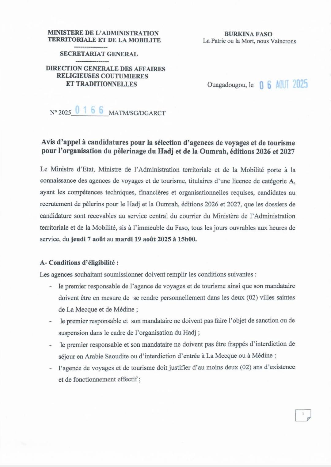 Avis d’appel à candidatures pour la sélection d’agences de voyages et…